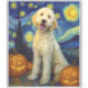 Goldendoodle Cute Dog Halloween Jack O Lantern Pumpkin Face Starry Night Van Gogh