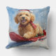 Goldendoodle Dog in Sledge Let it Snow Christmas Throw Pillow