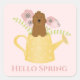 Cartoon illustration of a Goldendoodle popping out of a watercan filled with flowers. Perfect for summer and spring!