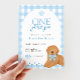 Personalize it with your child’s name, age, and fun details like favorite foods, songs, and first words. The sweet golden doodle design adds a touch of charm that fits perfectly with a puppy birthday theme, “one golden year” celebration, or blue gingham farmhouse party décor.