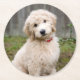 Goldendoodle Puppy Sits In Grass Round Paper Coaster