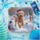 A fluffy Goldendoodle runs playfully through the snowy winter scene, wearing a festive red Christmas hat. This lively design highlights the breed’s curly coat, affectionate nature, and cheerful personality while capturing the joyful spirit of the holiday season. A heartwarming winter moment filled with festive charm.