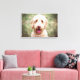 Up close shot of a goldendoodle smiling. Designer dog, golden retriever and poodle.