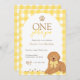 Goldendoodle Yellow Gingham First Birthday Invitation