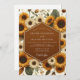 Embrace the warmth of a rustic affair with this earthy botanical design. A dense pattern of goldenrod and cream sunflowers blooms alongside delicate wildflowers and muted green foliage. The rich, warm color palette creates a cheerful and vintage-inspired atmosphere for your special day.