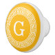 Goldenrod Wht Greek Key Rnd Frame Initial Monogram Ceramic Knob
