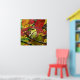 This poster features a lovely little goldfinch perched on a branch, surrounded by brilliant autumn foliage. He is as small as the leaves of the ash tree and actually blends in to form an abstract composition of red, orange, green, yellow, black and white.