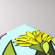 American goldfinch perched on floral stem with purple Alstroemeria and yellow daisy flowers in background