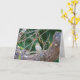 Goldfinch juvénile dans Almond Tree Greeting Card. Vous pouvez facilement customiser ce produit gratuitement si vous souhaitez ajouter un libellé ou changer la couleur de l'arrière - plan.
