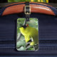Make your baggage stand out on an airport carousel with unique tag designs! This luggage tag features a lovely little yellow, black and white goldfinch perched on a branch. The pretty bird is surrounded by green summer foliage. Customize the reverse side with your personal information.