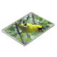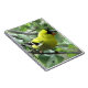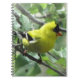 This notebook features a lovely little yellow, black and white goldfinch perched on a branch. The pretty bird is surrounded by green summer foliage.