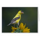 Cette carte colorée présente une photo d'une finche jaune perchée sur un tournesol géant.