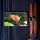 This awesome luggage tag features a photograph of a nosy goldfish staring up from its watery world wondering what is going on. The fish is white with a pretty red marking on its head. There is customizable text on the back of the luggage tag allowing you to personalize it with your name and any other text of your choice.