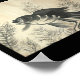 Traditional Chinese brush painting by Ren Adams is reproduced here with nice, crisp colour. A swimming goldfish, long though to attract prosperity in China and Japan, glides effortlessly through warm waters.