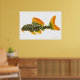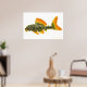 Original fine art design of a Goldy Pleco or Plecostomus by illustrator Carolyn McFann of Two Purring Cats Studio on a quality poster for tropical aquarium fish fans.