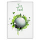 Modern illustration with golf as the theme. A golf ball represents the Earth with golfers and flags around it in tones of green. Fun and modern design for the golf lover.