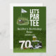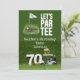 Swinging into 70: Golf-themed Birthday Party Invitation, Get ready to celebrate in style as we tee off to mark [Name]'s 70th birthday! Our exclusive golf-themed invitation card sets the tone for a swinging celebration on the green. Featuring a classic golf ball atop its tee, this invitation captures the spirit of the sport and invites guests to join in the fun. Whether you're a seasoned golfer or new to the game, this party promises to be a hole-in-one experience filled with laughter, memories, and good times. Save the date and get ready to swing into 70 with us!"