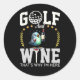 I am here to offer this Classic Round Sticker for sale, perfect for all the golf and wine enthusiasts out there. Whether you love hitting the green or sipping on a glass of your favourite vintage, this sticker is a great way to show off your passions. Add it to your collection or gift it to a friend who shares your interests. Let's make your belongings a little more personalized and enjoyable with this sticker.