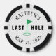 These custom poker chips feature the playful phrase "Last Hole" along with a golf flag image, making them a fun addition to a golf-themed bachelor party. Personalize them with the groom's name and date for a unique and memorable keepsake. Ideal for the groom and his friends, these poker chips add a humourous and personal touch to any pre-wedding celebration.