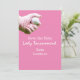 Golf ball is in lady golfer's hand on pink Invitation