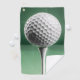 Golf Towel with image of a white golf ball on a white tee on a green background.