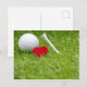 Golf ball with love heart shape and tee postcard