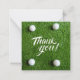 Golf ball with thank you word on green grass card