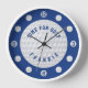 A fun design for lovers of golf in navy blue and white. Golf balls are displayed in place of the numerals, and there is a large golf ball to create the clock face. The caption can be edited to suit, and currently reads "TIME FOR GOLF". You can personalize the clock further with a name or initials or other text.