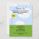 Golf birthday party invites featuring flagstick on the fairway. Edit text to create a golf-themed party invitation.