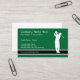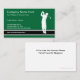 Here is a golf theme business card template with cool design in green, black and white with ability to customize the background colour, text, and layout. Includes a golfer swinging a golf club designed for any golf shop, golf school, or golf equipment and supplies business.