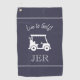 Golf Cart Golfer Quote Monogrammed Blue & White Golf Towel
