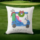 Golf Christmas Blue Golf Cart Personalized Preppy Throw Pillow