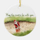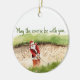 Celebrate the holidays with a festive golf twist! This charming ceramic ornament features Santa Claus golfing on a green course, swinging his club, riding a golf cart, and surrounded by golf balls, golf bags, and cheerful Christmas decorations like ornaments, candy canes, and holly. The playful text “May the Course Be With You” adds humour and holiday cheer. Perfect for decorating the Christmas tree or gifting to golf lovers. Bright, modern watercolor style with vibrant holiday colours.