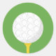 This sticker features a vector graphic of a golf ball on a golf tee, on a green background.