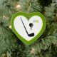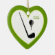 Golf club and ball black, green heartb ceramic ornament displaying a minimalist icon of a black golf club and ball and your text on white background with green border.
