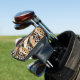 This golf club cover is shown in black with a mod animal leopard print accent and black piping.