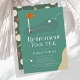 This retro modern "Retirement Par-tee" retirement party invitation features a red flag and golf balls with a fairway and bunker in a golf course . The reverse side features a dark green background with a golf ball and tee pattern. Personalize it for your needs. You can find matching products at my store.