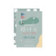 This retro modern gender reveal golf party/par-tee invitation features a blue and pink flags and golf balls with a fairway and bunker in a golf course. The reverse side features a sage green background with a golf ball and tee pattern. Personalize it for your needs. You can find matching products at my store.