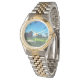 The watch is bright and shiny. It feels strong and durable. It is very appealing and attractive. The printed image appears clear. It is a perfect reminder for me to "Be Present" everywhere I go.