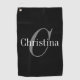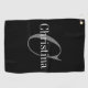 Ce modèle de serviette de golf respectable et classe a un nom et une lettre initiale modifiables. Une serviette de golf comme celle-ci pourrait être un cadeau amusant personnalisé pour quelqu'un qui aime vraiment le golf. [~Z0000440]