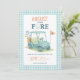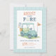 Boy's Golf theme 4th birthday invitation. Turning Fore 4th Birthday Party Invitation with preppy gingham teal blue pattern and cute smile face blue golf cart. Get the par-tee started for your boy turning 4! Add his photo on the back of the invitation.
