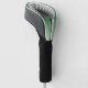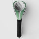 Customisable golf head cover with an image of a white golf ball on a white tee on a green background with space for personalisation by adding name and surname.