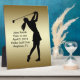 The image shows a female golfer in full swing. The Hole-in-one Commemoration information is a template that is easily customized. This is a gift sure to please any golfer lucky enough to get a hole-in-one.