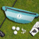 Funny fanny pack golf design features a female golfer silhouette in trendy dark teal green set on a white shape bordered with curved text "It's Time To Par Tee!" in matching dark teal font. The background is solid light teal with a white and dark teal border, and all colours are easily customized in the design tool area, EVEN the golfer! Customize with initials or name in matching font with the simple-to-use template. The area above the zipper is finished in dark teal and has the option of additional custom text or leave blank. If you have any questions regarding this or any of my designs please contact beachpausedesigns@gmail.com or use the message feature. Custom colour requests accepted.