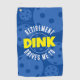 Drôle Pickleball Bague Golf ou Sac Serviette avec "Retraite me conduit à Dink" disant en bleu et jaune vif en gras texte clair, un cadeau de retraite parfait pour un joueur de pickleball OU quelqu'un qui a récemment commencé à jouer du pickleball après avoir pris sa retraite et commencé un nouveau hobby de sport.