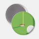 Illustration of a golfing green with the hole in the ground and a golf ball ready to knock in. Image available on various gifts and products. Magnets.