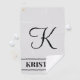 Ce design luxueux et élégant de serviettes de golf comporte un nom personnalisé et une lettre initiale. Une serviette de golf comme celle-ci pourrait être un cadeau amusant personnalisé pour quelqu'un qui aime vraiment jouer au golf. [~Z0000440]