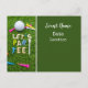 L'invitation à la partie Golf Par avec balle de golf et tee - shirts colorés est sur l'herbe verte.
