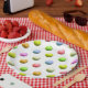 Creative golf party or event paper plates featuring colourful golf ball pattern.