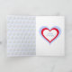 This bright sporting Valentine's Day card has a pattern of golf clubs on a pale blue background, and a large golf ball on the front on which you can add your preferred greeting. Inside there is a pattern of golf balls on the left side. On the right, is a blue and red heart frame for your editable message "I love you more than golf!"